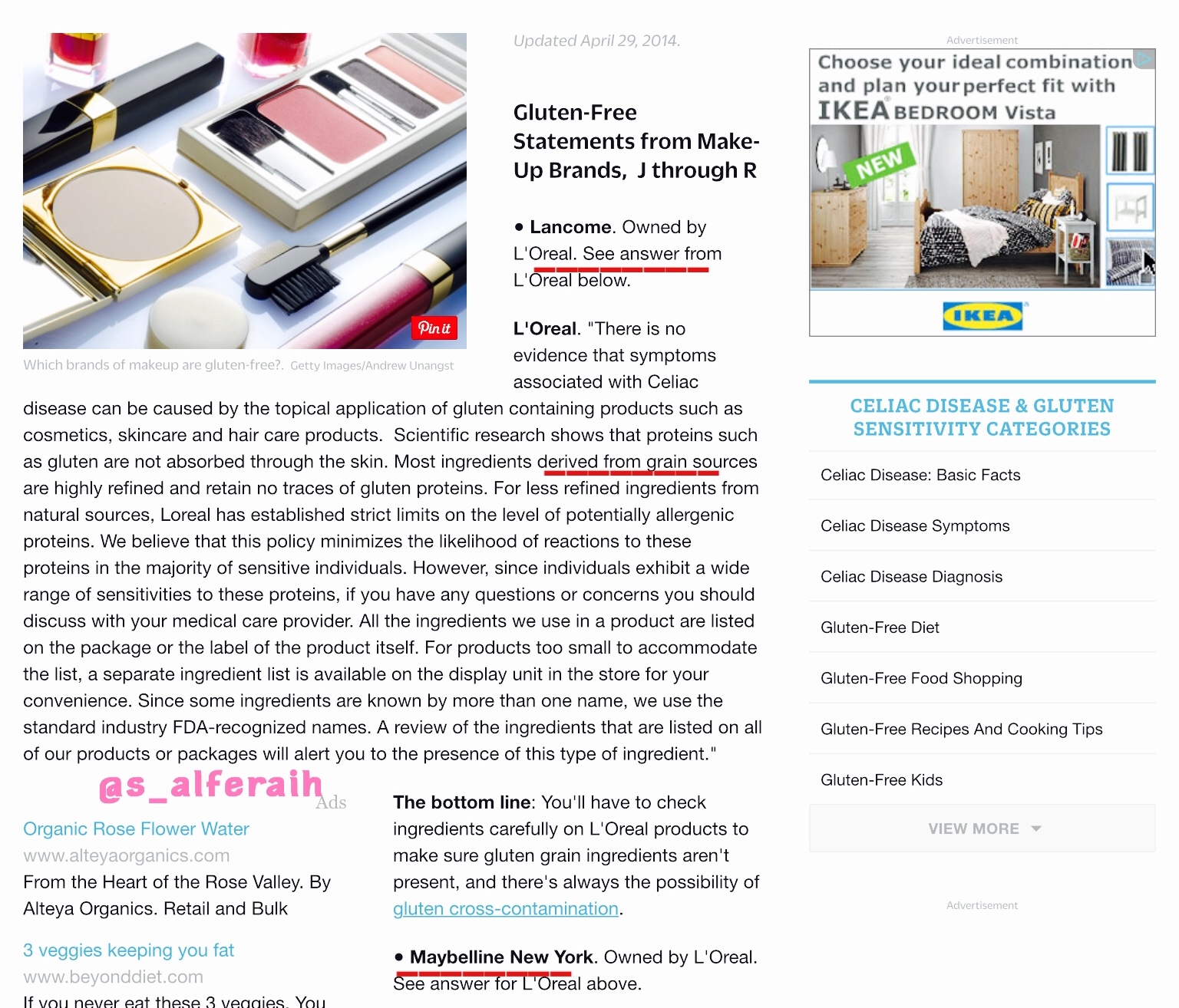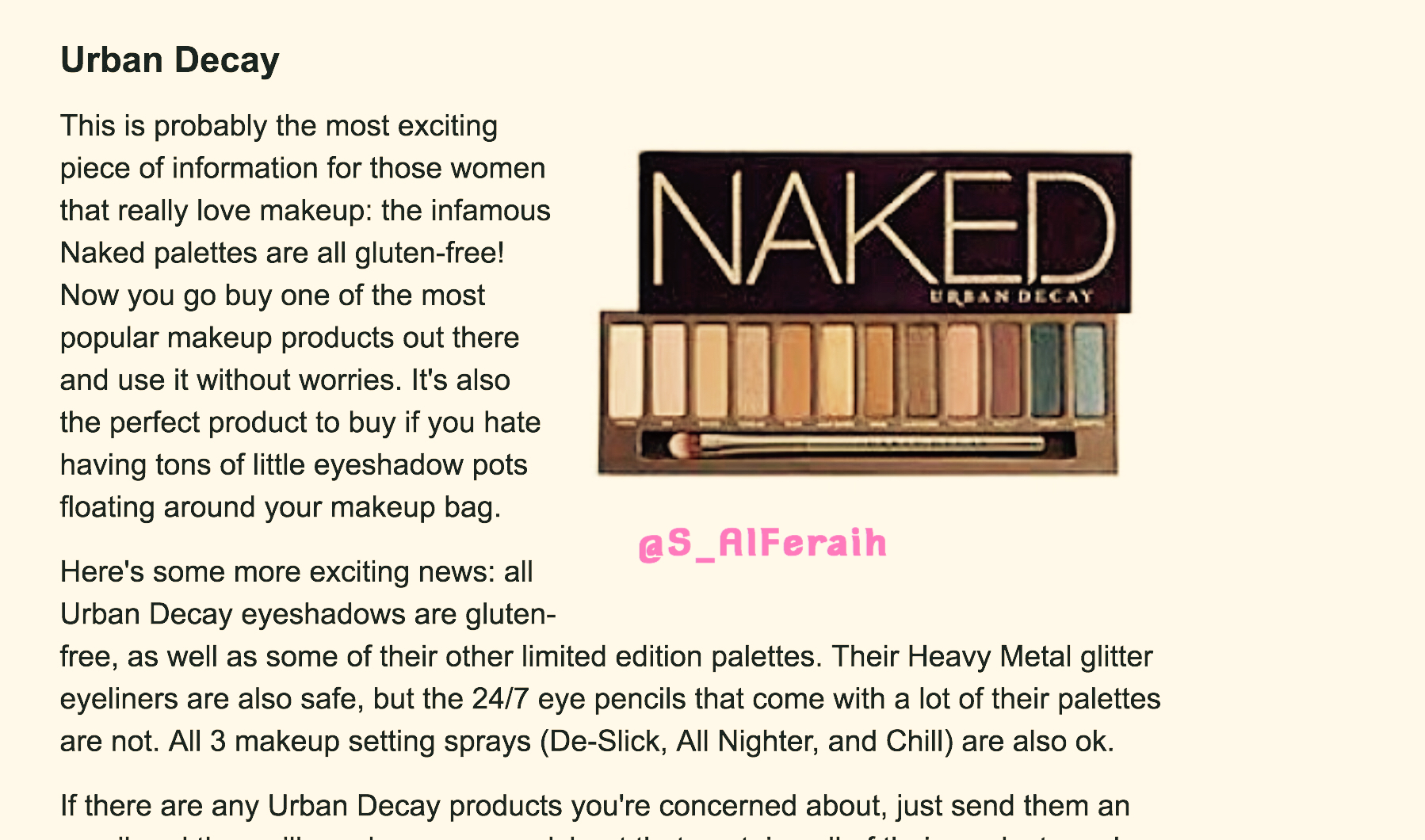 مواقع تفيد بوجود مستحضرات تجميل خالية من الجلوتن: