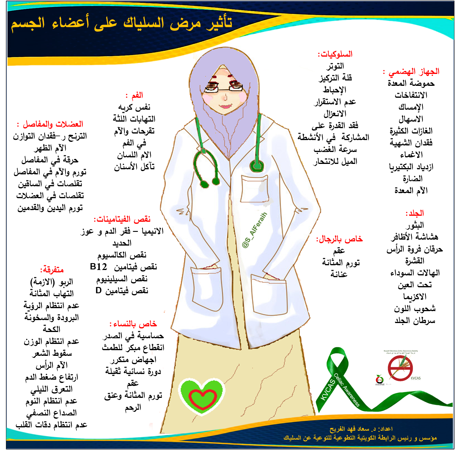 1. السلام عليكم كيفك دكتوره انا عندي سلياك وسويت حميه من 3سنوات ولي 8شهور فتحت الحميه لاني في دكتور يعالج الحساسيه بالاعشاب واستهدمت الاعشاب وماراح والحين عندي اعراض اتفاخ في القدمين واسهال بس وزني زي ماهو….