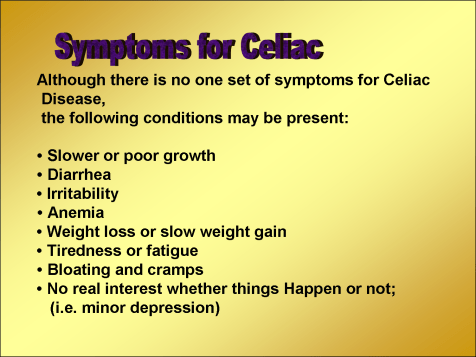 Celiac disease (also known as celiac sprue and gluten senstive enteropathy) is a chronic inflammatory disorder characterized by mucosal damage to the small intestine leading to gastrointestinal illness, nutrient malabsorption, and a wide range of clinical manifestations (NIH, 2004; han, et al. 2002). There is a consensus opinion that celiac disease is caused by an aberrant (T lymphocyte) immune response to dietary glutens predominantly found in wheat, barley, and rye (NIH, 2004). However, there is evidence that at least some persons who have celiac disease may not tolerate oats (Lundin et al., 2003; Arentz-Hansen et al., 2004). Those individuals who have a genetic predisposition to celiac disease react to peptides within the proline- and glutamine-rich protein fractions of the grains (Dewar et al., 2004). For affected individuals, celiac disease is a lifelong condition and, if not treated, is associated with significant morbidity and increased mortality (Fasano, 2003; Corrao et al., 2001; Dewar et al., 2004). There is no cure for celiac disease (NIH, 2004). Strict avoidance of potentially harmful concentrations of glutens in the diet is the only known means of completely preventing the clinical and pathological complications of celiac disease (NIH, 2004; Fasano and Catassi, 2001).