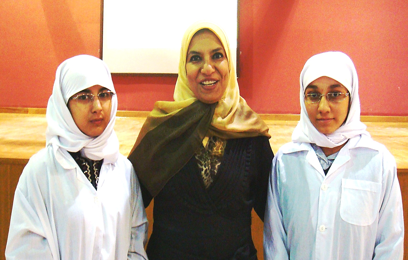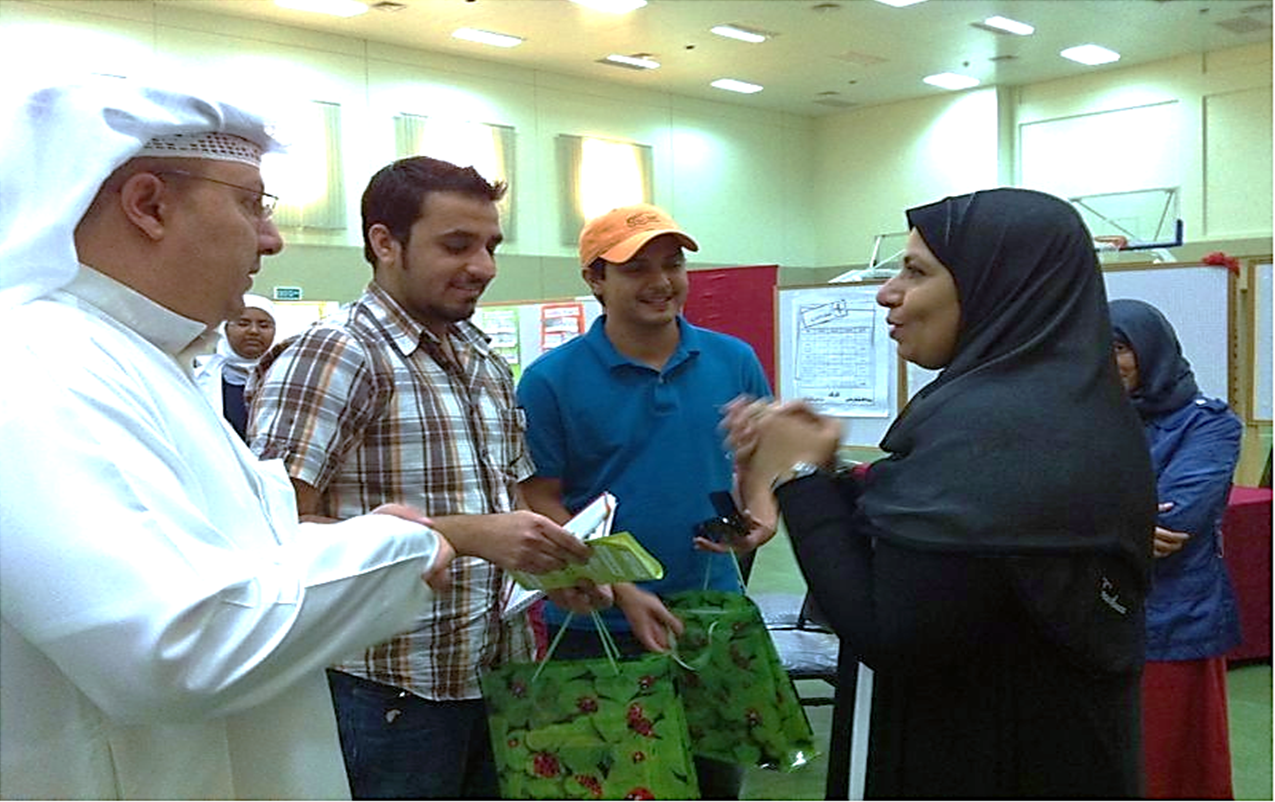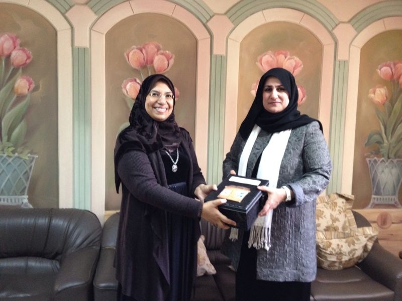 الفائزة بمسابقة تويتر لأفضل طبق خالي من الجلوتين تستلم جائزتها من أ.فرح الكندري مديرة ثانوية هدية للبنات- المدرسة الداعمة للمسابقة