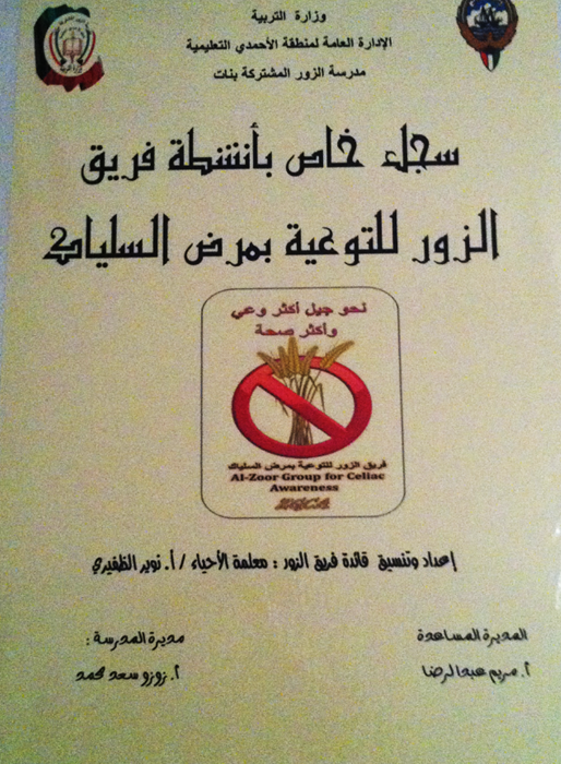 وتسليم المدرسة نسخة عن كتاب قصتي مع السلياك وقصة ماما ماهو السلياك ومجموعة بروشورات توعوية لمكتبة المدرسة